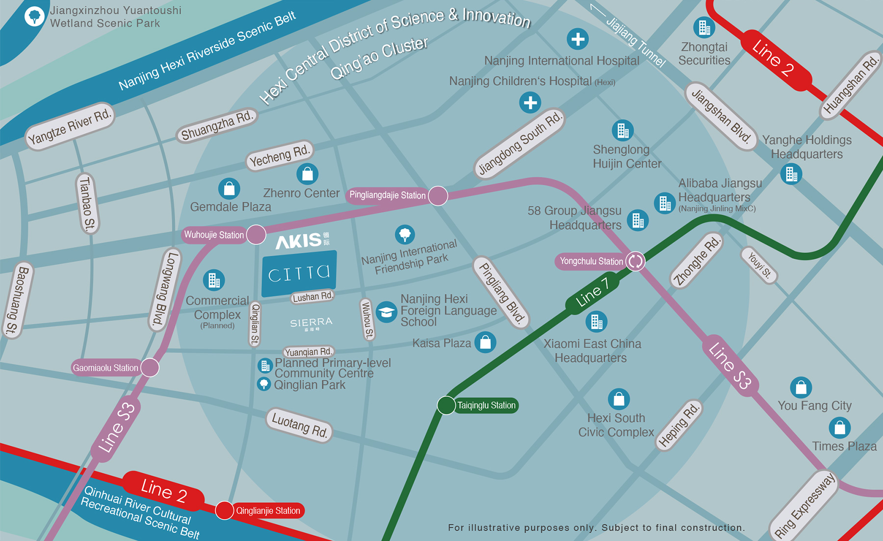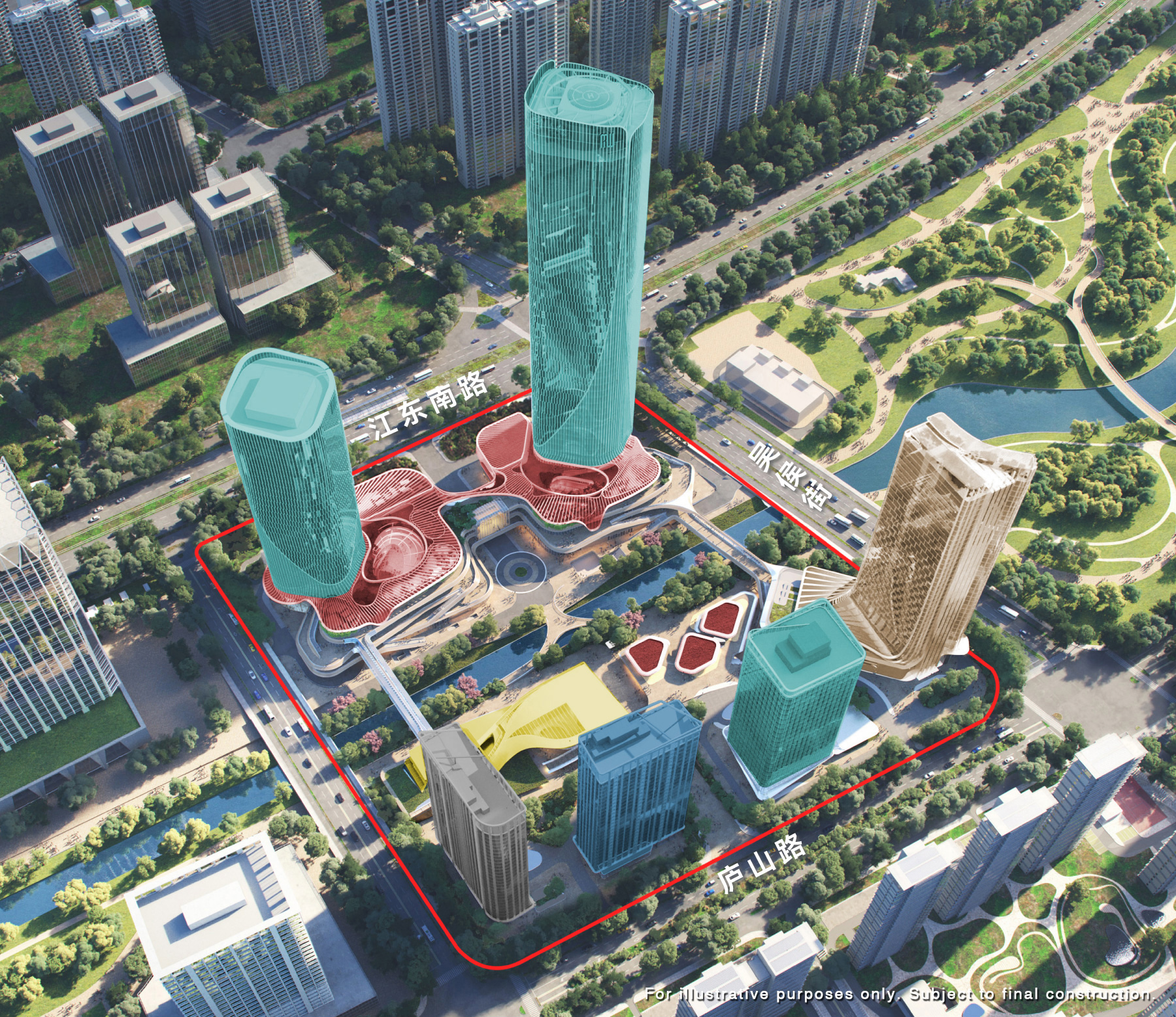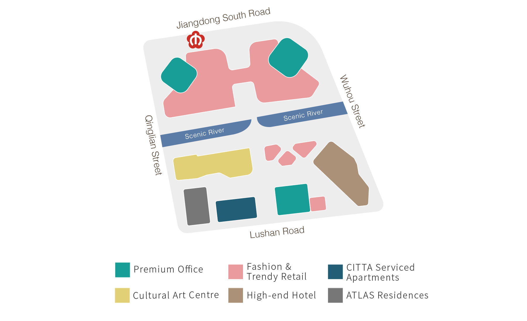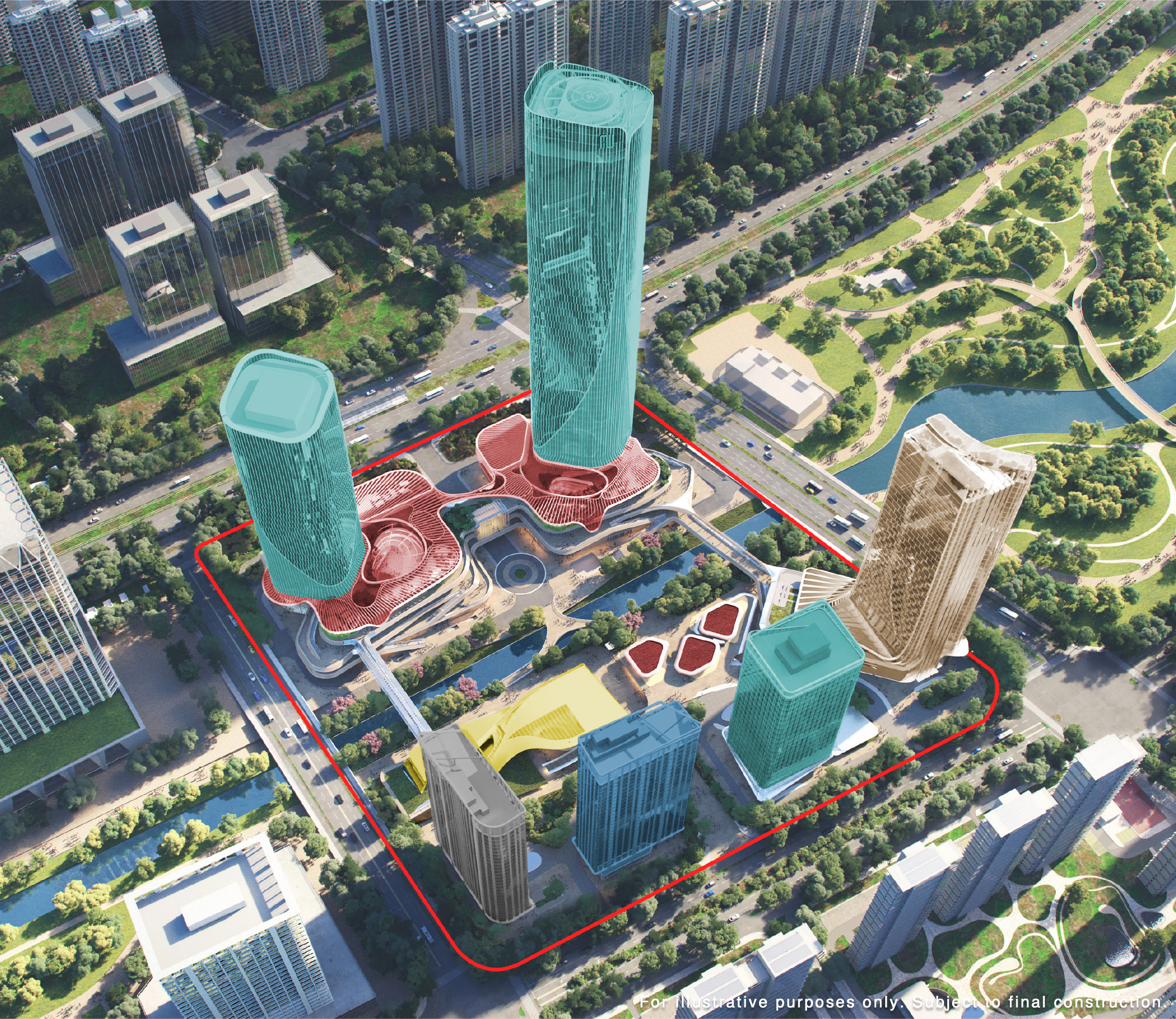 All content on this webpage—including maps, renderings, conceptual diagrams, and images (including marked references to office buildings, hotels, cultural and art centers, and other planned facilities)—is for reference only and represents conceptual planning. It shall not constitute any offer, commitment, or warranty, whether express or implied. Some images are computer-generated, not to scale, or do not reflect the actual project site. The soft furnishings (e.g., furniture, lighting, decorative items) and service items shown are for illustrative purposes only and are not part of the final delivery. The actual construction is subject to government approvals. The developer reserves the right to adjust the planning, service offerings, and delivery standards due to policy changes, force majeure, or operational needs. All rights and obligations shall be governed solely by the terms of the lease agreement, and the content of this webpage shall not form part of any contract.