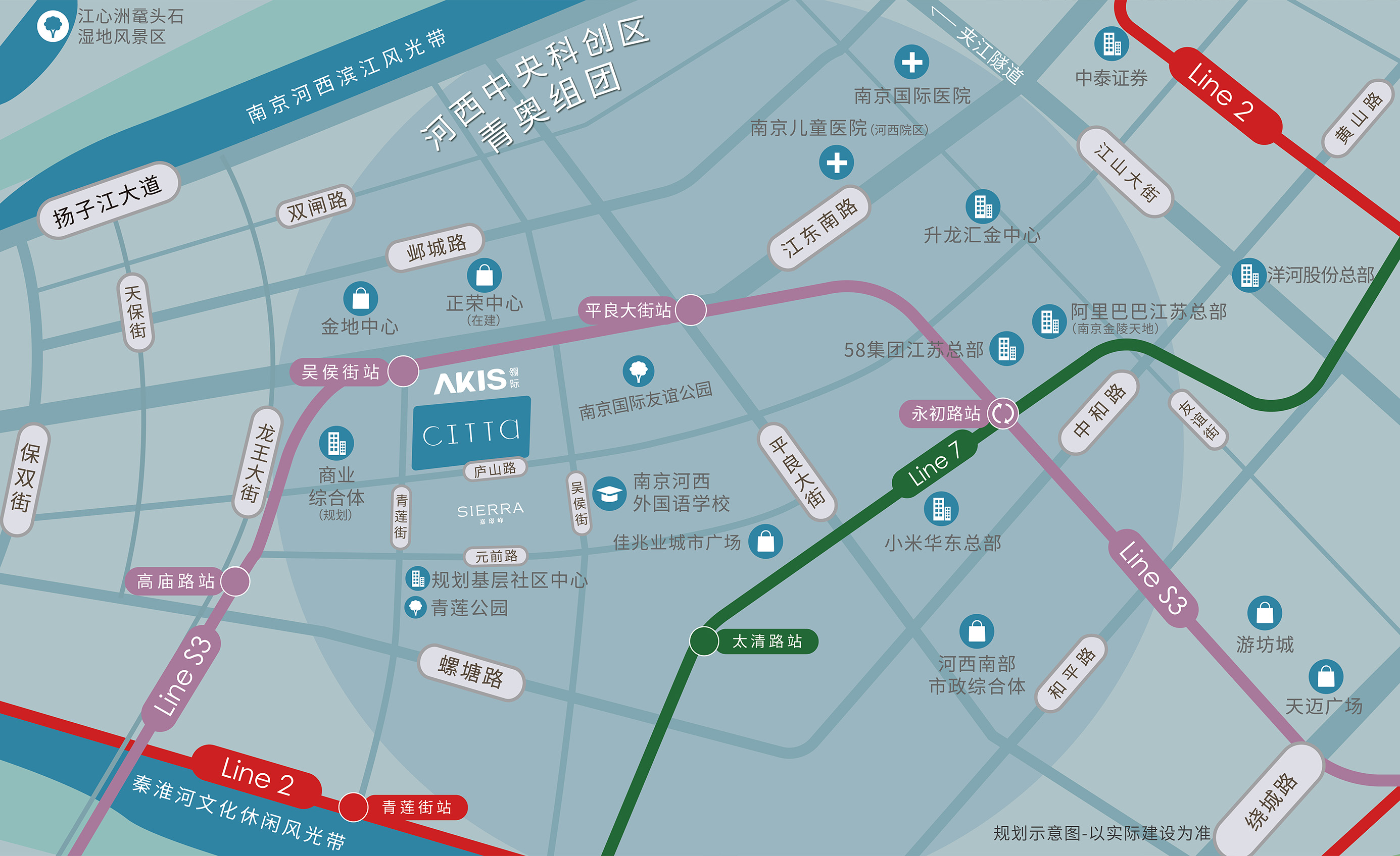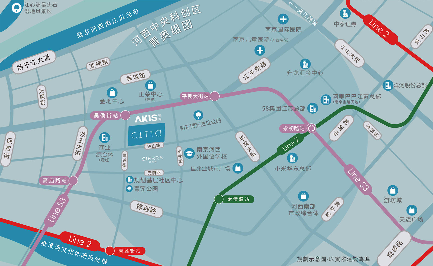 本网页所有内容、地图、效果图、示意图、实景图等资料(含标注的办公楼、酒店、文化艺术中心等规划配套)均为概念性规划展示或参考示意,不构成任何明示或默示的要约、承诺或保证;部分图片经电脑合成、未按比例或非本项目实景,所示软装(家具、灯具、装饰物等)及服务项目不构成交付内容;实际建设以政府审批结果为准,开发商保留因政策、不可抗力或运营需要调整规划、服务项目及交付标准的权利,最终权利义务以租赁合同约定为唯一依据,且本网页资料不作为合同组成部分。