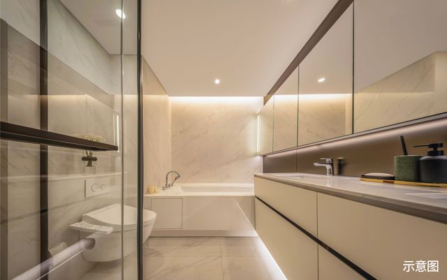 主卫浴缸与淋浴双区设计